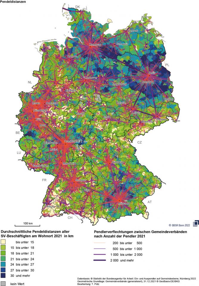 unterscheitet sich regional jedoch erheblich. Im Jahr 2022 pendelten