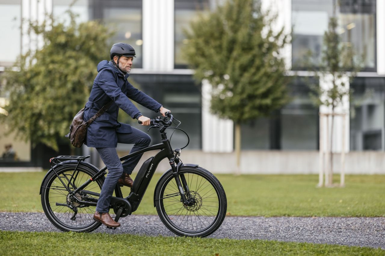 Ein weiterer Unterschied zum "normalen" eBike 25 ist die Helmpflicht: Laut § 21a Absatz 2 StVO muss bei S-Pedelecs ein "geeigneter Schutzhelm" getragen werden. In der Regel ist ein Fahrradhelm ausreichend. Einige Hersteller bieten spezielle Pedelec-Helme an, die die geprüfte Motorradnorm erfüllen, aber wesentlich leichter und besser belüftet sind. So gerät der Fahrer nicht so schnell ins Schwitzen.