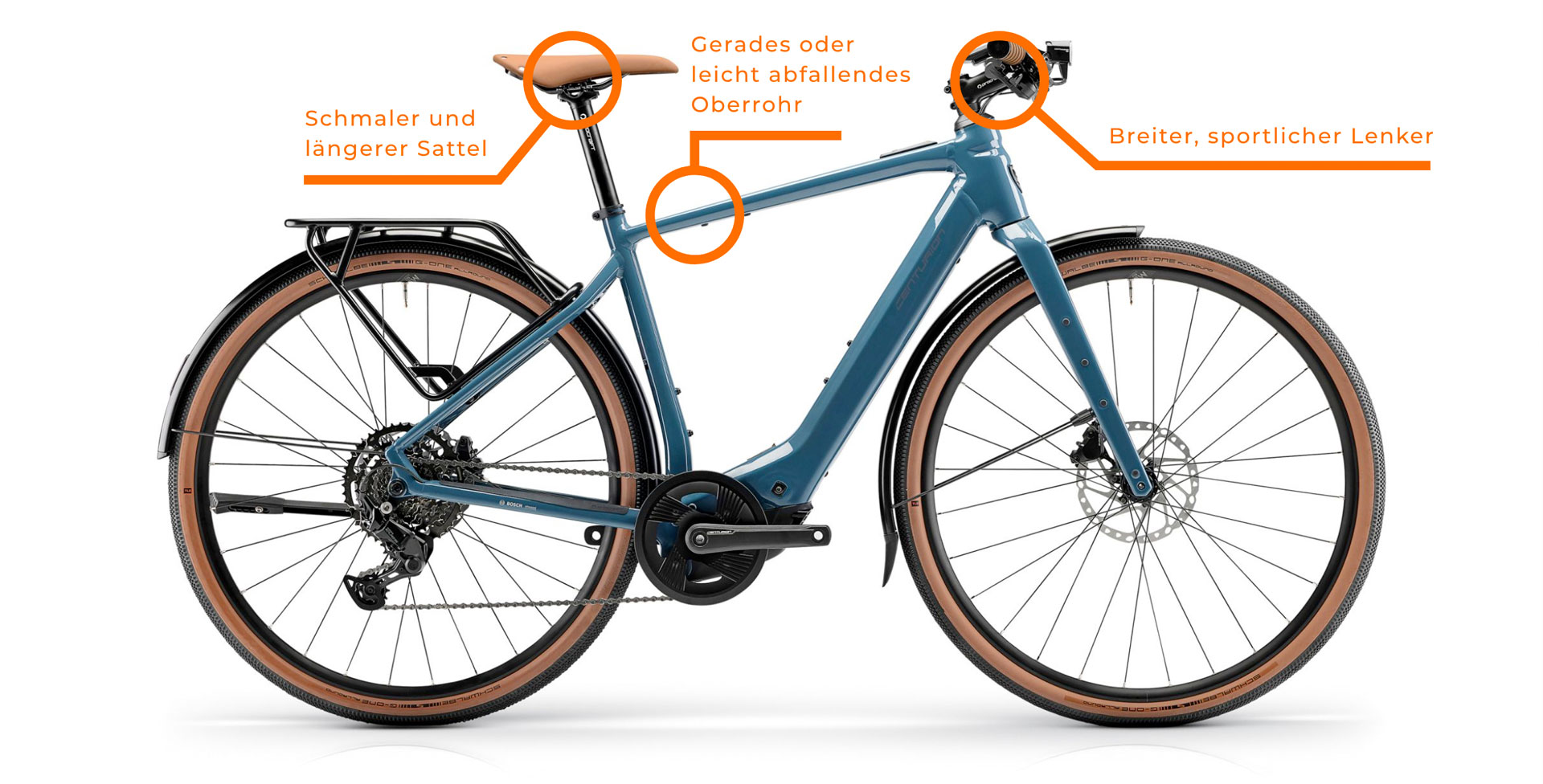 - E-Citybike: Entworfen für den urbanen Alltag. Kompakte Bauweise, aufrechte Sitzposition und praktische Extras wie Körbe oder Schutzbleche machen es ideal für kurze Strecken in der Stadt.